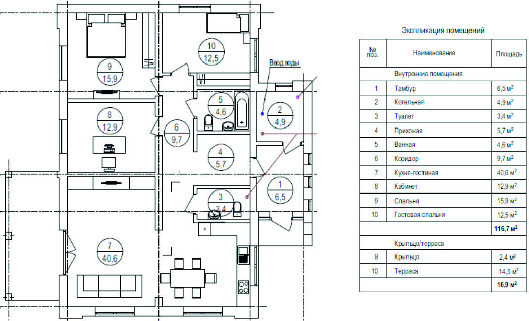 - Быстрое и экономичное строительство обеспечено простой формой строения и традиционной двускатной кровлей.